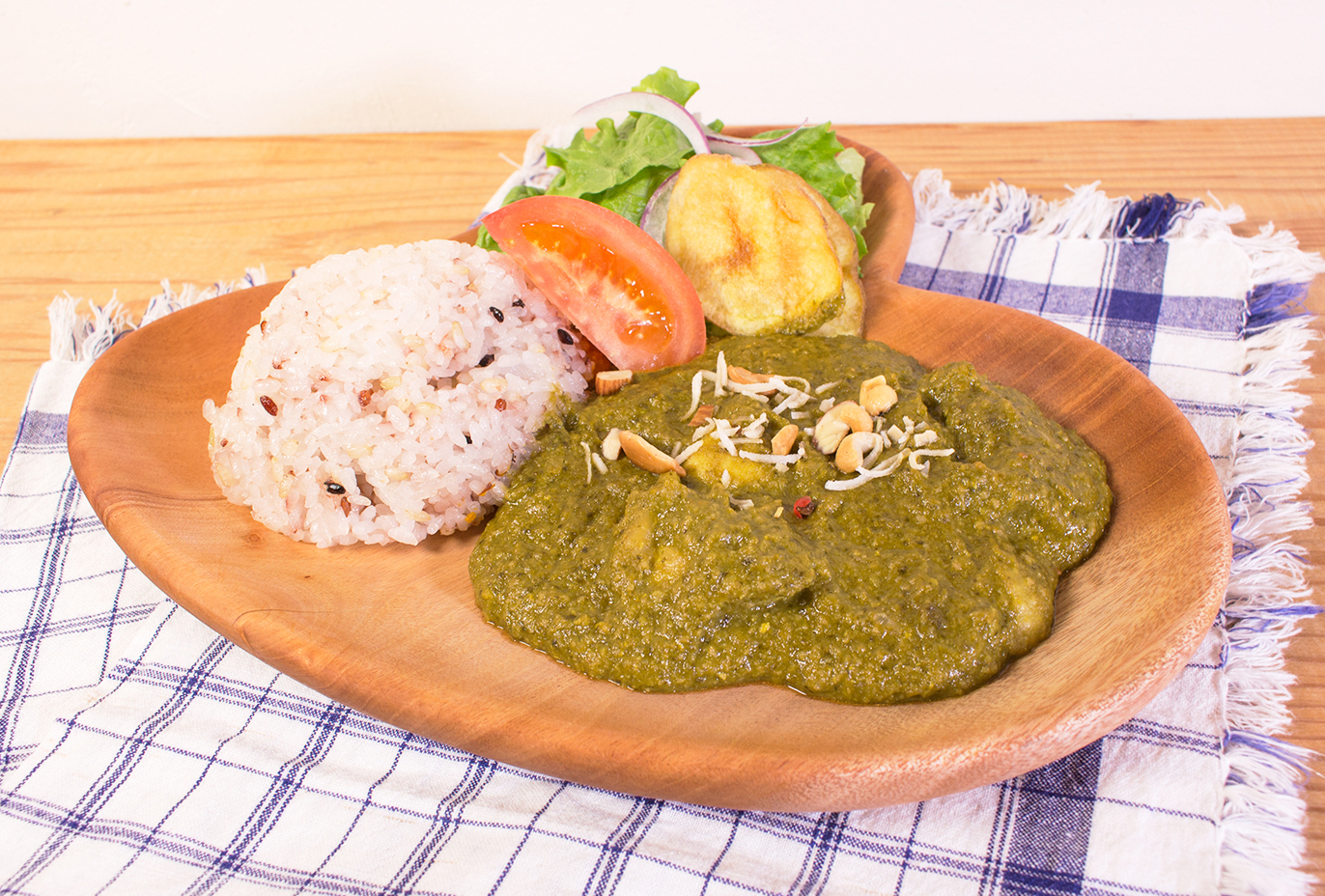 全てのおかずにココナッツを使用したプレートランチ。