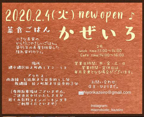 築95年の日本長屋をリノベーションされ古来の素材を活かし風情と落ち着きのある空間に生まれ変わった建物で2月4日にカフェ 「菜食ごはん かぜいろ」がオープン。