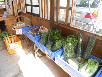 毎週木曜日に農家から直接届く野菜(有機野菜、農薬・化学肥料不使用野菜、自然農法で育てた野菜etc)。店内には、調味料からお菓子など色々商品が棚いっぱい揃えています。有機栽培の野菜・お米、有機またはそれと同等の加工品(醤油・みりん・塩などの各種調味料)、全粒粉、薄力粉等小麦粉、豆腐、牛乳等生鮮食品、ビスケット・せんべい等お菓子類、石鹸・洗剤等雑貨類など。