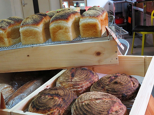 日曜日には薪窯で焼いた薪の香りのするバゲットも並び、