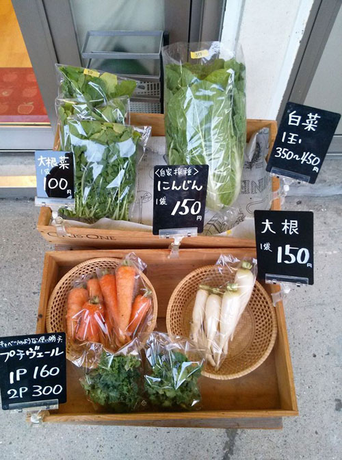 ★店頭には、自家農園産の、季節のお野菜が並びます。
