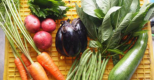 根っこ農園が扱う野菜は現在40~50品目。そのほとんどを露地で栽培。季節の野菜約7品目のセットにした1500円のボックスが好評で、週に40箱ほど発送・お届けをしています。今後は米の栽培にも取り組みたいと意気込み、36歳という若さが今後の可能性を期待させるひとりです。