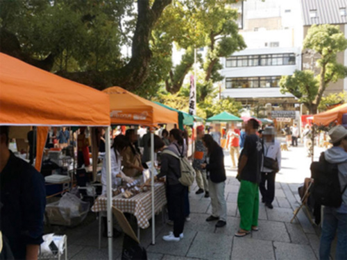 難波神社の定例ぐりぐりマルシェ。25ブース程度出店あり